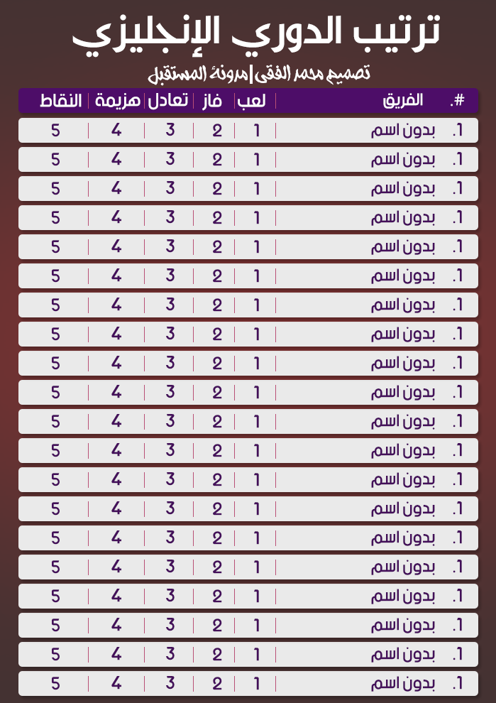 تصميم جدول ترتيب فرق الدورى ملف Psd